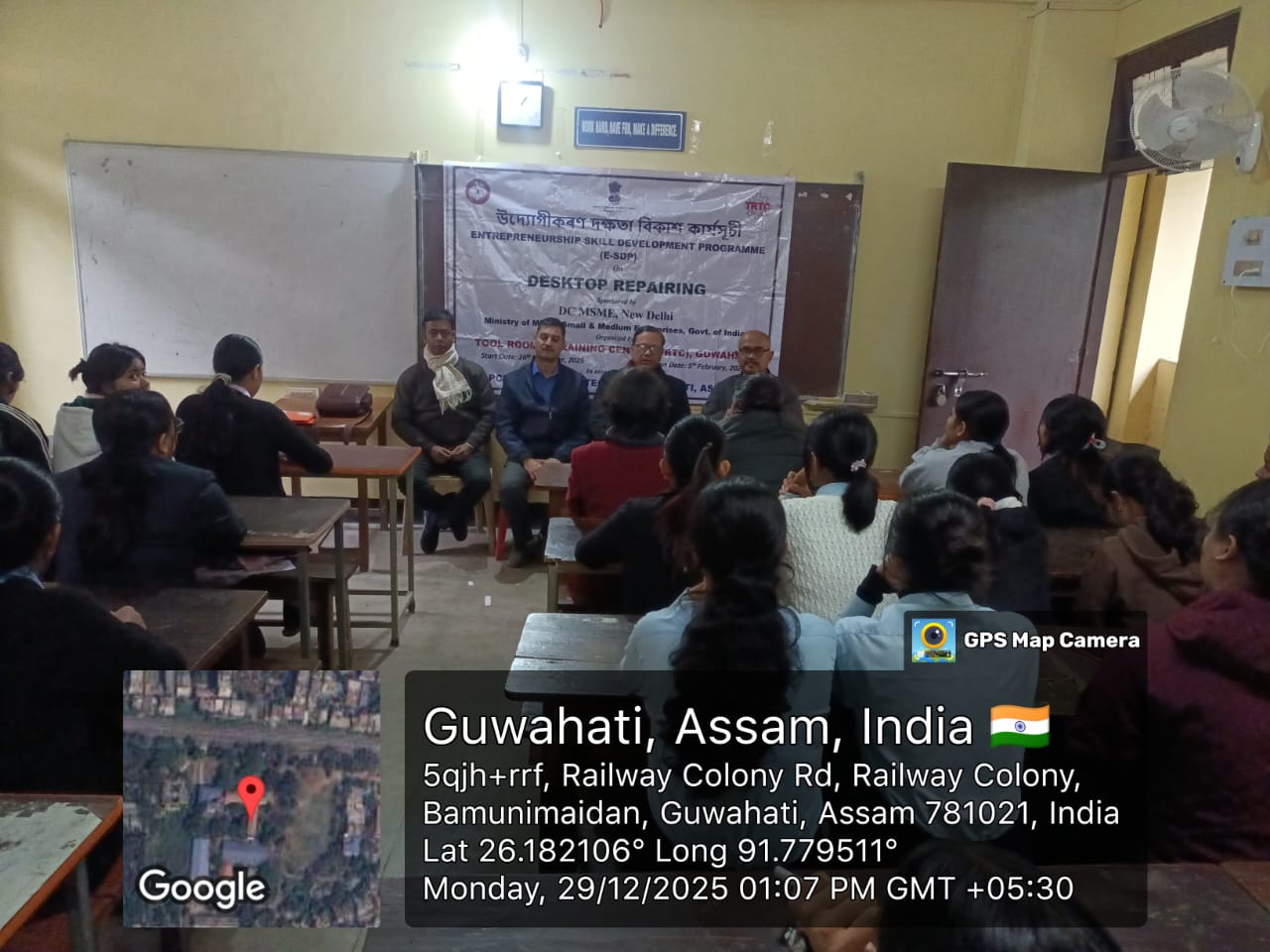 Inauguration of Entrepreneurship Skill Development Programme (ESDP) on "Desktop Repairing" on 29.12.2025 sponsored by DC MSME, Govt of India Ministry of Micro, Small and Medium Enterprise (MSME), Govt of India and organised by Tool Room & Training Centre (TRTC), Guwahati in collaboration with Entrepreneurship Department Cell of PCPS Girls' Polytechnic